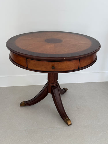 Vintage Schnadig Mahogany Pedestal Round End Table or Drum Table