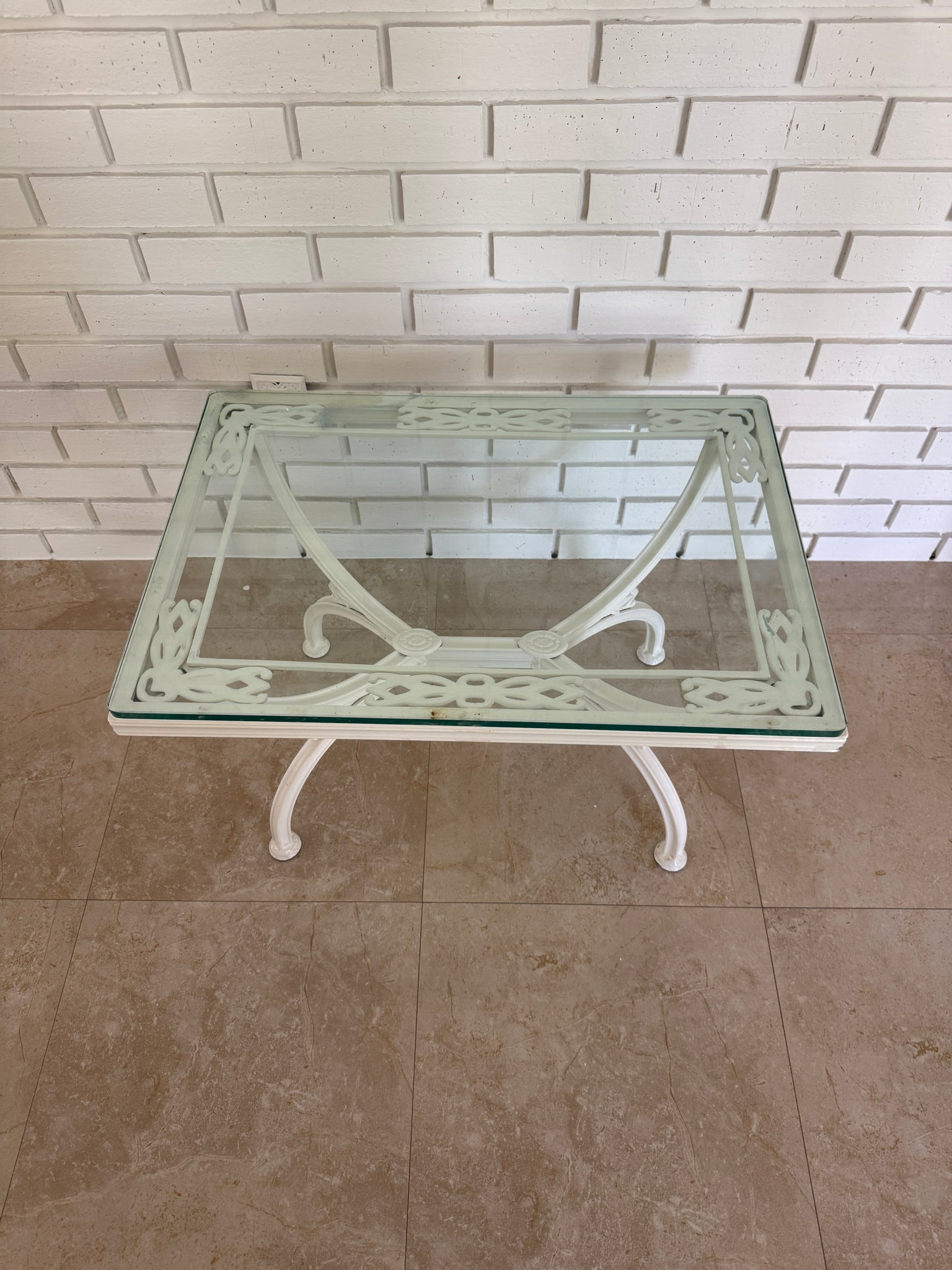 This charming vintage coffee or side table embodies classic 1970s design with a playful yet elegant twist. Crafted from sturdy wrought iron, the frame is beautifully painted in a crisp white, showcasing graceful curves and scrolled details that highlight its timeless appeal. The glass top provides a clean, airy look, making this piece versatile for a variety of spaces. Perfect for both indoor and outdoor use, it’s ideal as a coffee table in a sunroom, a side table on a covered patio, or a stylish accent piece in a living room or garden setting. Whether you’re styling a retro-inspired patio or adding a touch of vintage charm indoors, this table is a functional and decorative statement piece.
