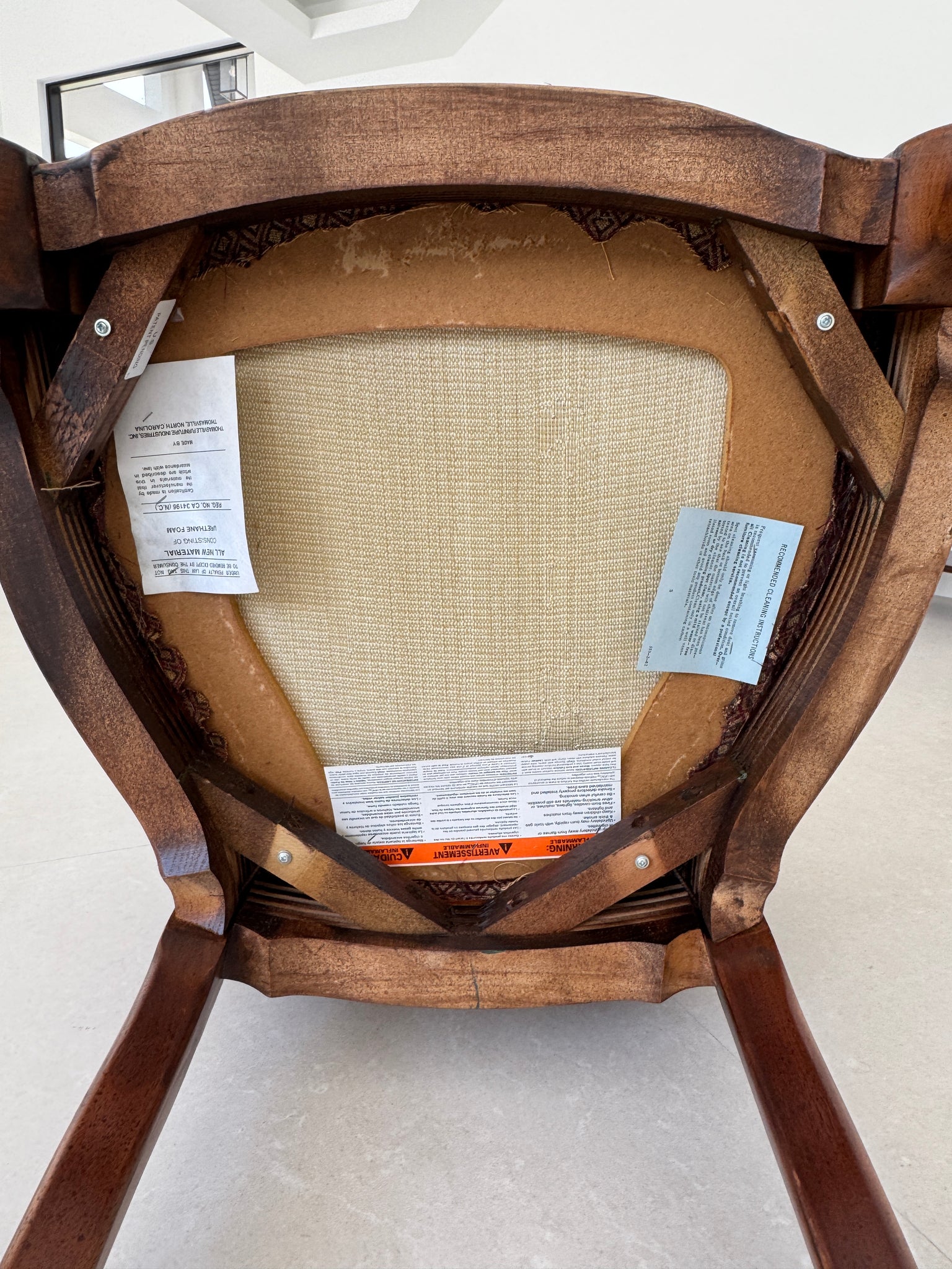 These are vintage chairs, they are in good vintage condition though one chair has a white stain on the back rest as pictured. See pictures for details. Wear and tear consistent with age and use.