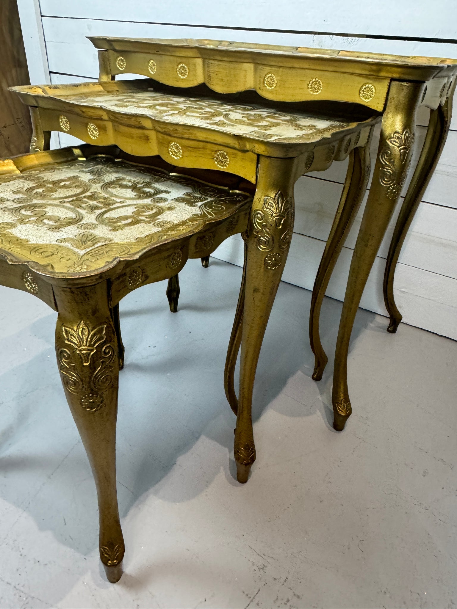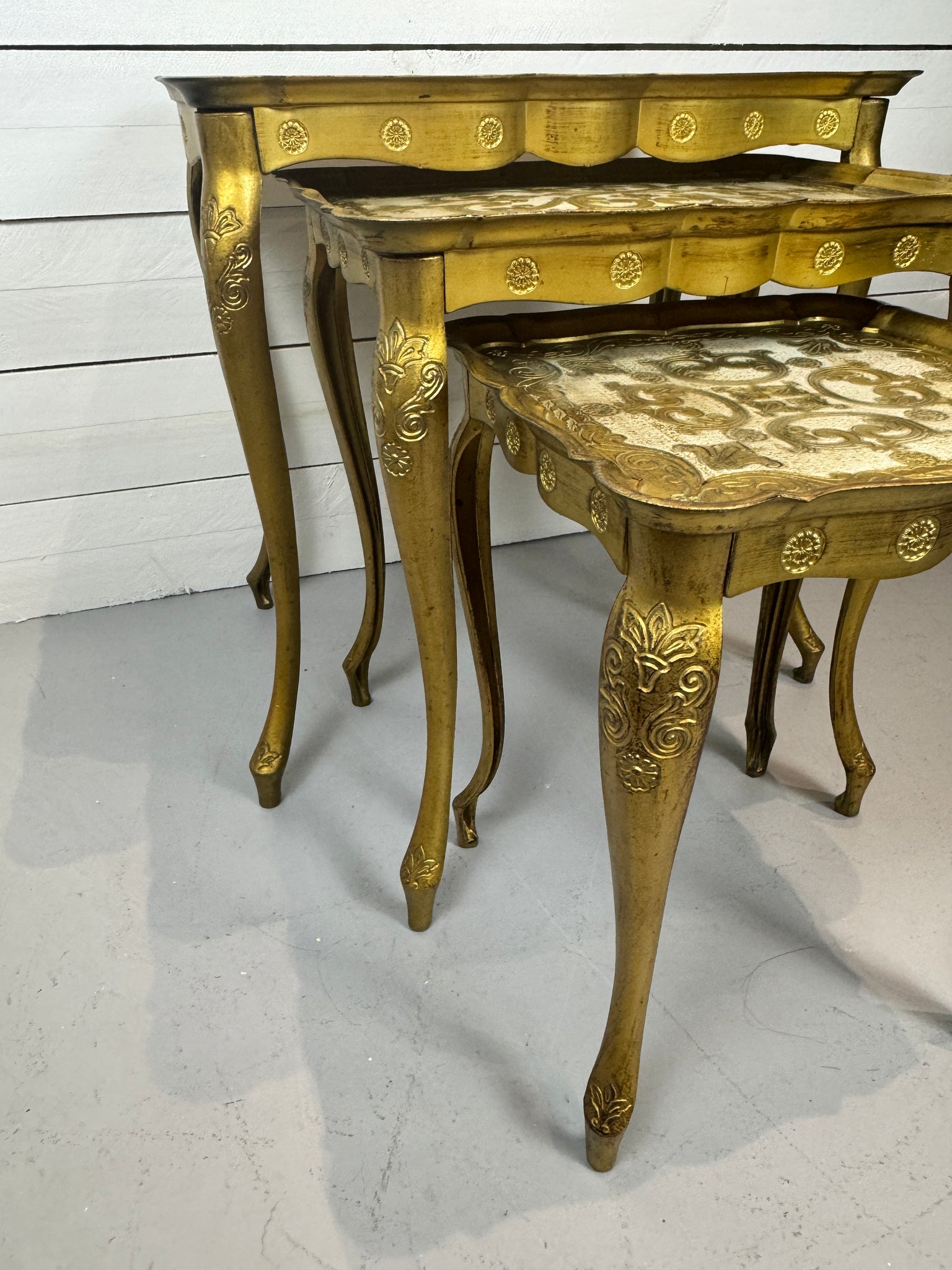 Vintage 1950s Florentine Gold Nesting Tables - Set of Three