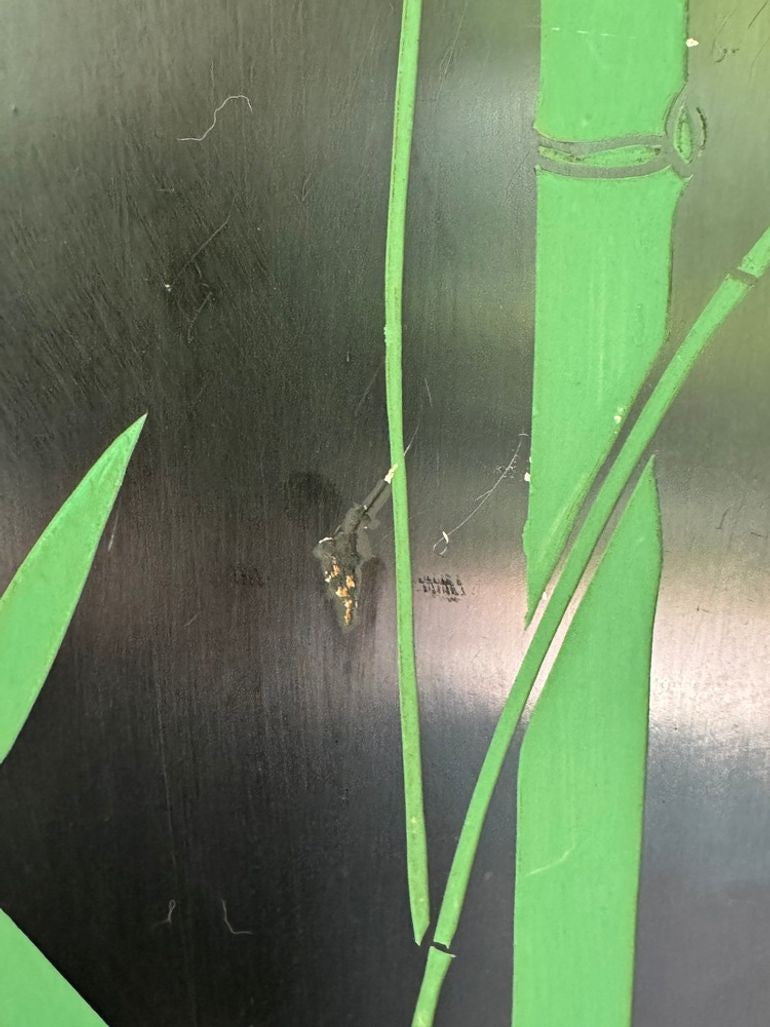 This is a vintage item. It is in good vintage condition though there are some scratches on the lacquer. Wear and tear is consistent with age and use. See pictures for details.