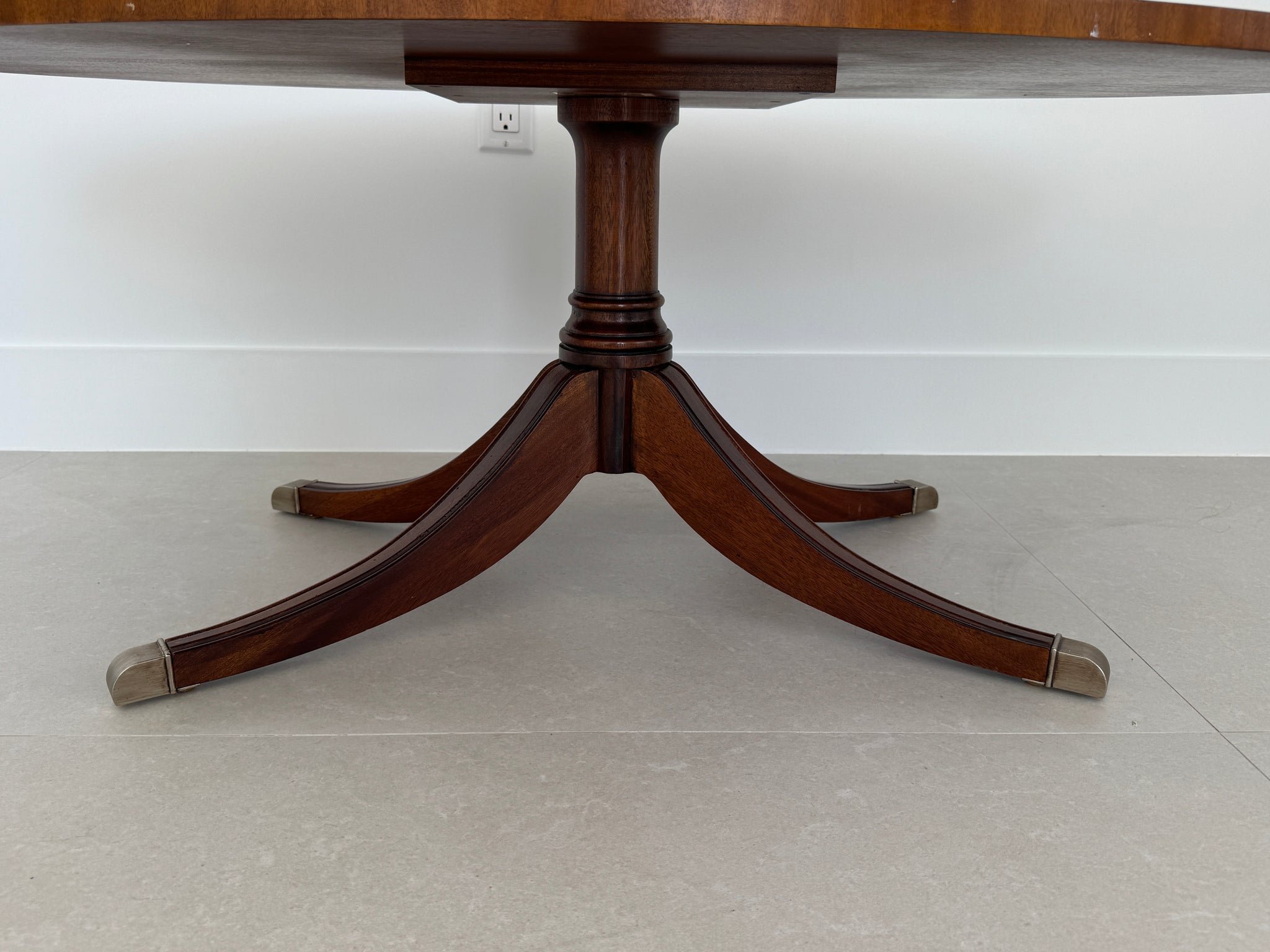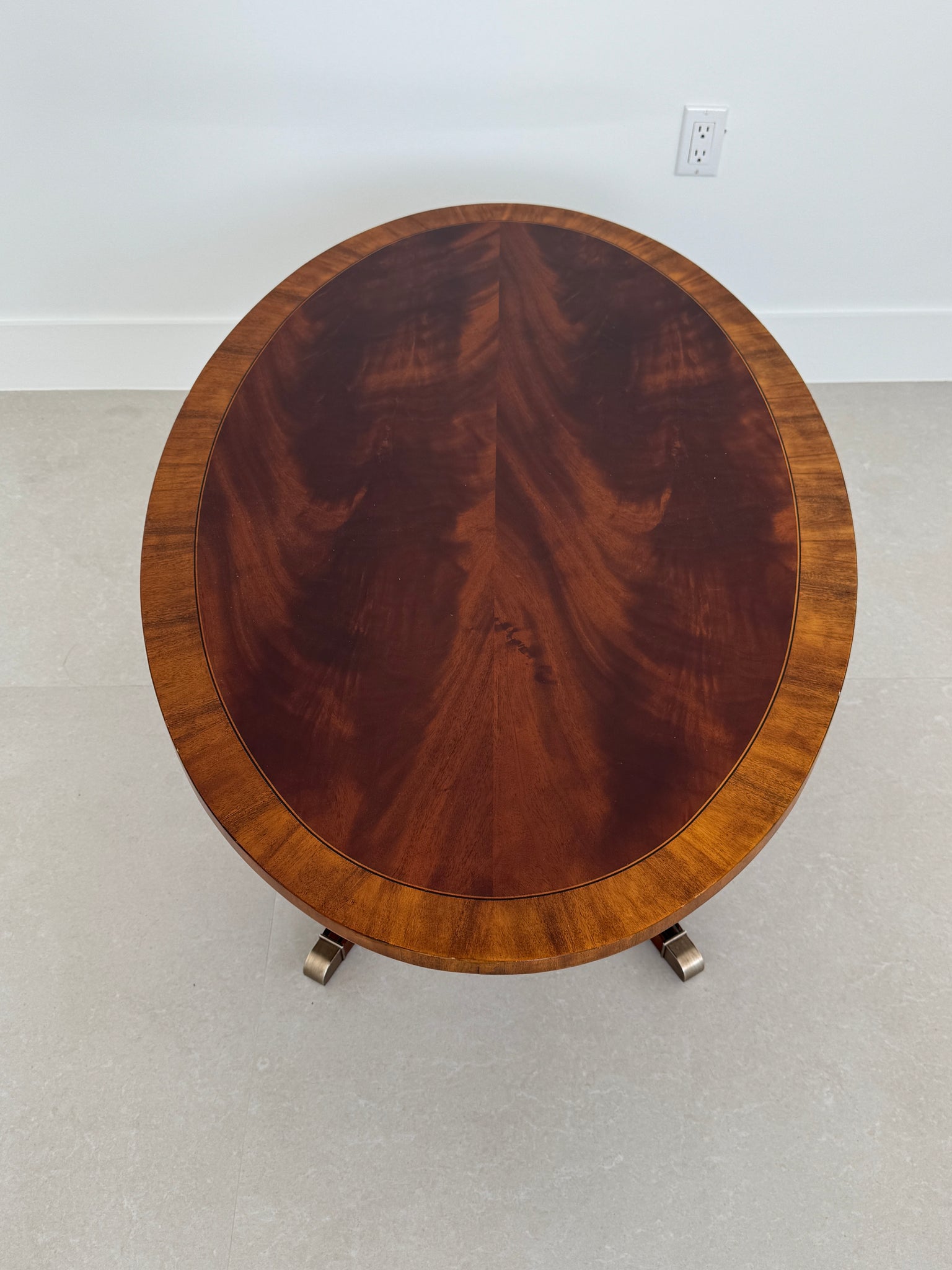 This vintage Ethan Allen coffee table from the Newport Collection showcases timeless craftsmanship in rich mahogany wood. Its elegant oval shape, graceful tapered legs, and warm hand-rubbed finish make it a versatile centerpiece for both traditional and transitional interiors. Sturdy and beautifully detailed, it brings classic charm and enduring style to any living space. Perfect for a bedroom sitting area or living room.